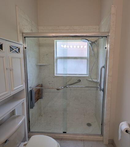 This project demonstrates a high-value Bathtub-to-Shower Conversion that transforms the existing space into a contemporary, custom-fitted bathing sanctuary. We utilized three walls of luxurious Botticino Cream panels in a smooth finish, extending the height to 96 inches for a truly immersive and seamless look that dramatically upgrades the room's aesthetic. Functionality and accessibility were prioritized with the inclusion of two corner shelves, two essential safety bars, and a convenient Moen fold-up seat for comfort and security. The design is perfected by a modern Bi-Pass door enclosure and a fully updated plumbing system featuring the reliable Moen Magnetics with Posi-Temp valve and trim, expertly installed with the showerhead lowered slightly to perfectly match the client's needs.