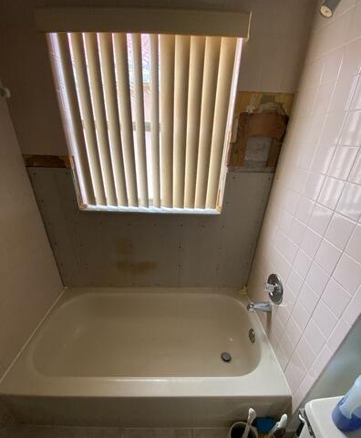 This project illustrates a complete modernizing transformation, converting an original pink-toned bathtub and dated square tiles into a high-end, walk-in shower system. The initial space featured a traditional tub with a large window and standard chrome fixtures. The renovation involved a full Tub to Shower conversion utilizing a cohesive Azzurra Bay color palette for both the smooth-style walls and the shower base. To enhance functionality and style, the plumbing was upgraded with a Moen Valve and a Moen Dual Shower Head in a premium Brushed Nickel finish. The installation also features two integrated Corner Shelves for organized storage and a modern Bypass Door system with Brushed Nickel hardware and clear glass, which seamlessly integrates the window and provides a bright, open feel to the entire bathroom.