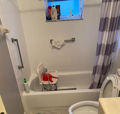 This bathroom featured a traditional tub with dated tile and a basic shower curtain setup. The space felt tight and dark, with limited accessibility and visual appeal — not ideal for everyday comfort or ease of use.
