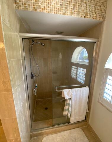 This Delray Beach homeowner wanted to replace their home's original bathtub and tile with a new White Pearl Shower with a Semi-Frameless 3/8 inch Sliding Glass Door! We added a new brushed nickel magnetic shower head that is much larger than the previous product and provides greater water volume with increased pressure. She was thankful and impressed with the bathroom renovation!