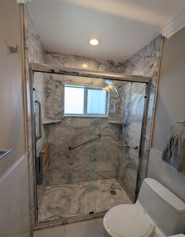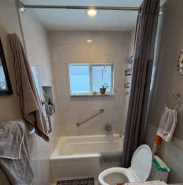 We gave this shower a fresh start with elegant, stone-look wall panels and a clean, low-maintenance shower base. A new sliding glass door was installed to enhance visibility and modernize the space. The handheld showerhead and built-in corner shelving add both comfort and convenience, while polished chrome accents bring a sleek, updated feel. Now the bathroom is brighter, safer, and much more inviting — a transformation delivered with precision and care.