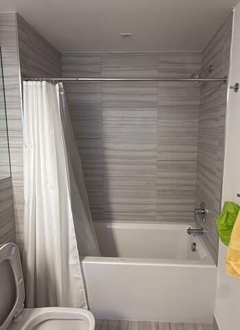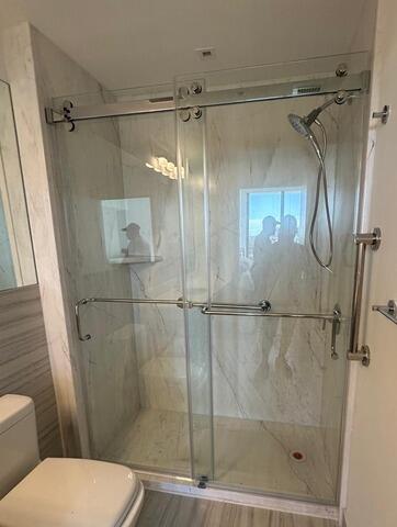 This project features a full tub-to-shower conversion, transforming a dated bathtub setup into a sleek, walk-in shower with modern finishes. The remodel included permit and HOA coordination, full demolition, and installation of Triton fixtures with a 42" rain shower and handheld combo. A recessed shampoo caddy was added to the back wall for clean, accessible storage, and a barn-style sliding door enhances both style and functionality. The result is a bright, spa-inspired space that blends comfort, elegance, and everyday practicality.