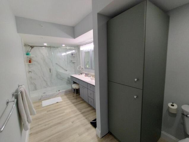This North Palm Beach bathroom had an outdated tub-and-shower combo with basic white tile and aging fixtures, making the space feel dull and impractical. The homeowner wanted a sleek, modern upgrade with a spa-like feel. Our team started by carefully demolishing the old tub and removing the outdated tub, ensuring a clean slate for the new shower. We then prepared the floor for the new shower base and upgraded the plumbing to accommodate the modern fixtures. In just one day, we installed a stunning Azurra Bay shower, complete with a seamless, low-maintenance surface and polished chrome fixtures for a touch of elegance. To enhance the space further, we added a barn door-style frameless glass enclosure, giving the shower an open, airy feel. The result is a luxurious, modern shower that combines style, functionality, and durability for years to come.