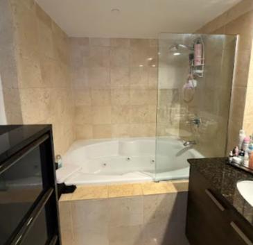 This North Palm Beach bathroom had an outdated tub-and-shower combo with basic white tile and aging fixtures, making the space feel dull and impractical. The homeowner wanted a sleek, modern upgrade with a spa-like feel. Our team started by carefully demolishing the old tub and removing the outdated tub, ensuring a clean slate for the new shower. We then prepared the floor for the new shower base and upgraded the plumbing to accommodate the modern fixtures. In just one day, we installed a stunning Azurra Bay shower, complete with a seamless, low-maintenance surface and polished chrome fixtures for a touch of elegance. To enhance the space further, we added a barn door-style frameless glass enclosure, giving the shower an open, airy feel. The result is a luxurious, modern shower that combines style, functionality, and durability for years to come.
