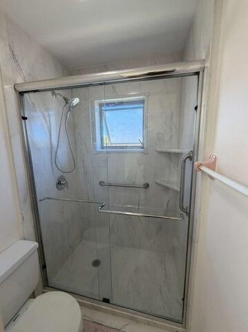 This professional shower-to-shower renovation in Boynton Beach showcases a modern and tranquil design using the Azzurra Bay wall system, with panels extended fully to the ceiling for a high-end, seamless finish. The project features a custom-fitted shower base with a left-side drain and includes a specialized window trim kit to perfectly integrate the existing window into the new waterproof design. To ensure a balance of organization and safety, the space is equipped with two integrated corner shelves and a robust safety package featuring both a 24" center grab bar and an 18" side grab bar in polished Chrome. The wet area was fully modernized with a new Chrome valve system and a high-performance Moen Magnetix showerhead. The transformation is elegantly completed with a high semi-frameless bypass door system, featuring dual through-glass towel bars and matching Chrome hardware throughout.