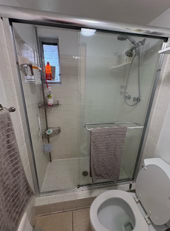 This Delray Beach homeowner wanted to replace their home's original bathtub and tile with a new White Pearl Shower with a Semi-Frameless 3/8 inch Sliding Glass Door! We added a new brushed nickel magnetic shower head that is much larger than the previous product and provides greater water volume with increased pressure. She was thankful and impressed with the bathroom renovation!