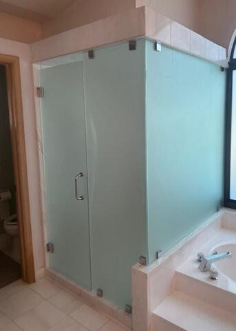 This sophisticated remodel reimagines an existing shower with custom craftsmanship and luxurious finishes. The new seamless shower base is custom fabricated and raised to floor level for a sleek, integrated look. Walls are clad in smooth Calcutta Gold panels, extending to 91" for a dramatic, high-end finish. A custom glass enclosure with chrome trim and pony wall detailing adds architectural elegance, while the Moen Magnetix chrome valve and matching trim ensure reliable performance and cohesive style. Safety and comfort are prioritized with two grab bars, a shave step, and a thoughtfully positioned corner shelf system.