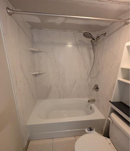Revitalize your bathroom without changing the reliable function you love. This stunning Bathtub-to-Bathtub Conversion replaces your worn, dated fixture and tile surround with a sleek new tub and a stunning contemporary aesthetic. We utilized three walls of captivating Azzurra Bay Smooth panels, providing a high-impact, continuous marble look that instantly elevates the entire room's visual appeal. Designed for effortless function with a standard shower curtain, the remodel integrates crucial modern amenities, including two integrated corner shelves and an essential safety bar, delivering a luxurious upgrade that is both practical and visually spectacular.