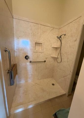 This refined remodel replaced a traditional shower with a zero-threshold walk-in design, enhancing both accessibility and visual harmony. The new enclosure features Botticino Cream wall panels with a smooth finish and full-height wainscoting, creating a warm, spa-like atmosphere.