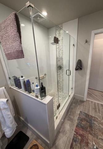 Prioritizing safety, we installed two sturdy safety bars to offer added support and stability, perfect for those with mobility concerns. The sleek glass sliding door enhances modern aesthetics and optimizes space efficiency.