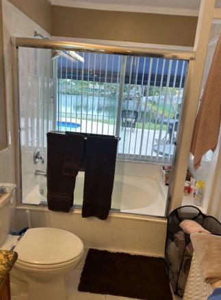 This professional bathtub to shower conversion in Sunrise features a clean and modern update utilizing the Azzurra Bay wall system extended to the ceiling. The renovation includes a matching shower base with a right side drain, designed for seamless functionality. To prioritize safety and accessibility, we installed a comprehensive grab bar package, including a 24" center bar and an 18" side bar, both in a polished Chrome finish. The space is further enhanced with a high-performance Moen Magnetix showerhead and two integrated corner shelves for optimal organization. The project is completed with a semi-frameless bypass door system standing 76" high with dual through-glass towel bars, creating a cohesive look with matching Chrome hardware throughout.