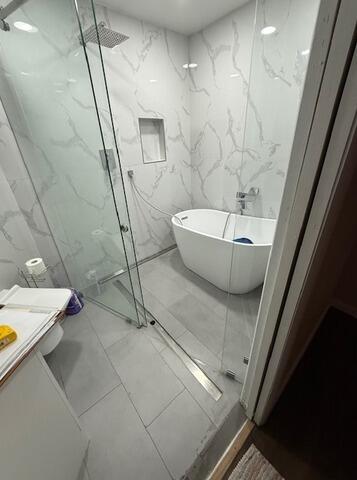 This renovation successfully executed a high-impact Tub-to-Shower Conversion, replacing the outdated bathtub and surround with a sleek, contemporary system. The new enclosure is defined by three walls clad in stunning White Pearl Smooth panels, providing a continuous, elegant marble aesthetic that is both beautiful and low-maintenance. Functionality and reliability were guaranteed with the installation of the reliable Moen Posi-Temp valve paired with the convenient Moen Magnetix trim. The final design is completed with two integrated corner shelves, delivering a fully customized, high-value shower retreat built for modern efficiency and style.