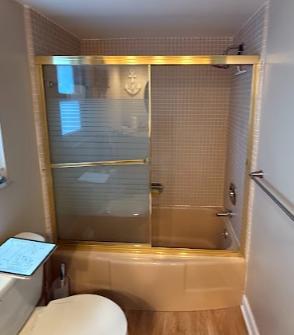 We completed a bathtub-to-shower conversion for our customer, featuring a custom Frost-colored seamless shower base with a non-slip finish, sized at 58 ¾" × 34 ¾". The new shower walls were installed in a smooth Frost finish with a 4" tile pattern, complemented by a single-panel custom glass enclosure with chrome hinges and trim. Plumbing upgrades included a Moen 10" rain showerhead and a handheld round head fixture, both in chrome. Accessibility and convenience were enhanced with two corner baskets and a safety bar, with final positions determined during installation. All work was completed in accordance with Everlast Bathrooms’ standards, with permit costs included and a clear plan for final door installation.