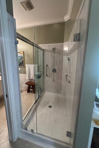 This elegant remodel replaced a dated shower with a sleek, marble-inspired enclosure designed for comfort and style. The new setup features Bardiglio wall panels in a smooth finish, paired with a sliding glass door and chrome accents that reflect light beautifully. Inside, two corner shelves and a built-in seat offer practical storage and comfort, while the overall design enhances the bathroom’s sense of space and luxury. The transformation delivers a clean, contemporary look that blends timeless textures with modern simplicity.